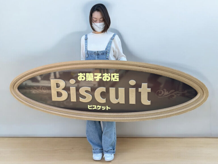 素材をPVCに見直し、お求めやすいローコストな価格や立体感を維持しつつより耐久性が向上し長持ちにする看板に。