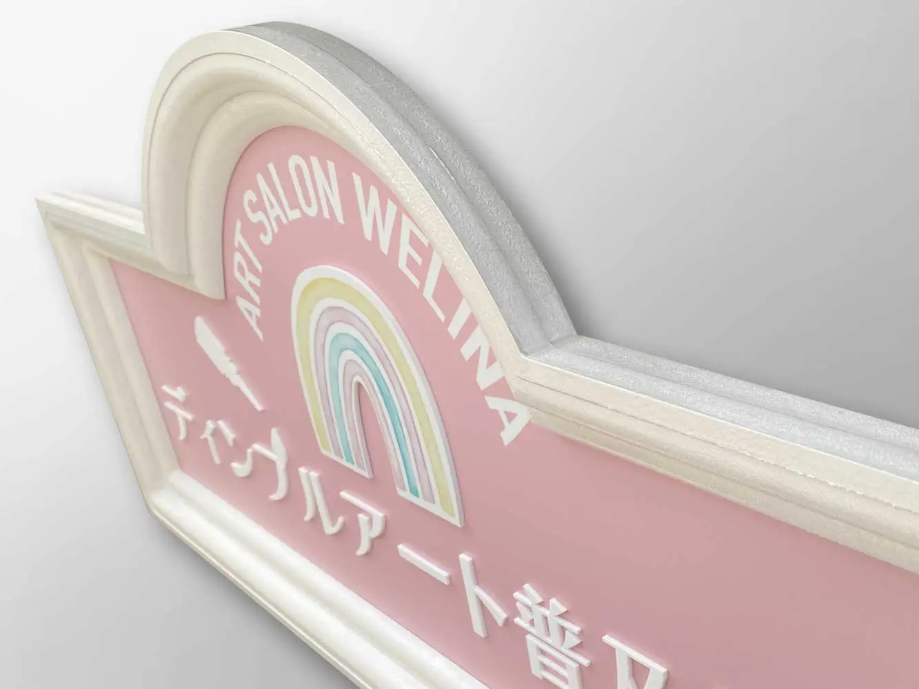 製作・施工事例 - ディンプルアート普及協会様 2025/7/12025/6/23 シリーズ名:ルーブル オプション照明:無し デザイン:ジャスミン サイズ:Sサイズ サインビクトリーからのコメント:クラシックなホワイトのフレームと淡いピンクの板面に、白をベースとしたアクリルカット文字・ロゴを貼り付け。ロゴ部分はフルカラー仕様で耐候プリント貼りでワンポイントデザイン性が付与されています。 お客様からのコメント:お客様からのコメントは現在作成中