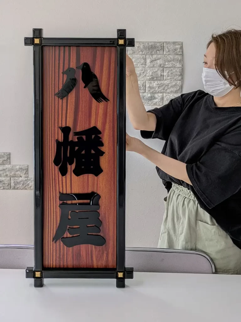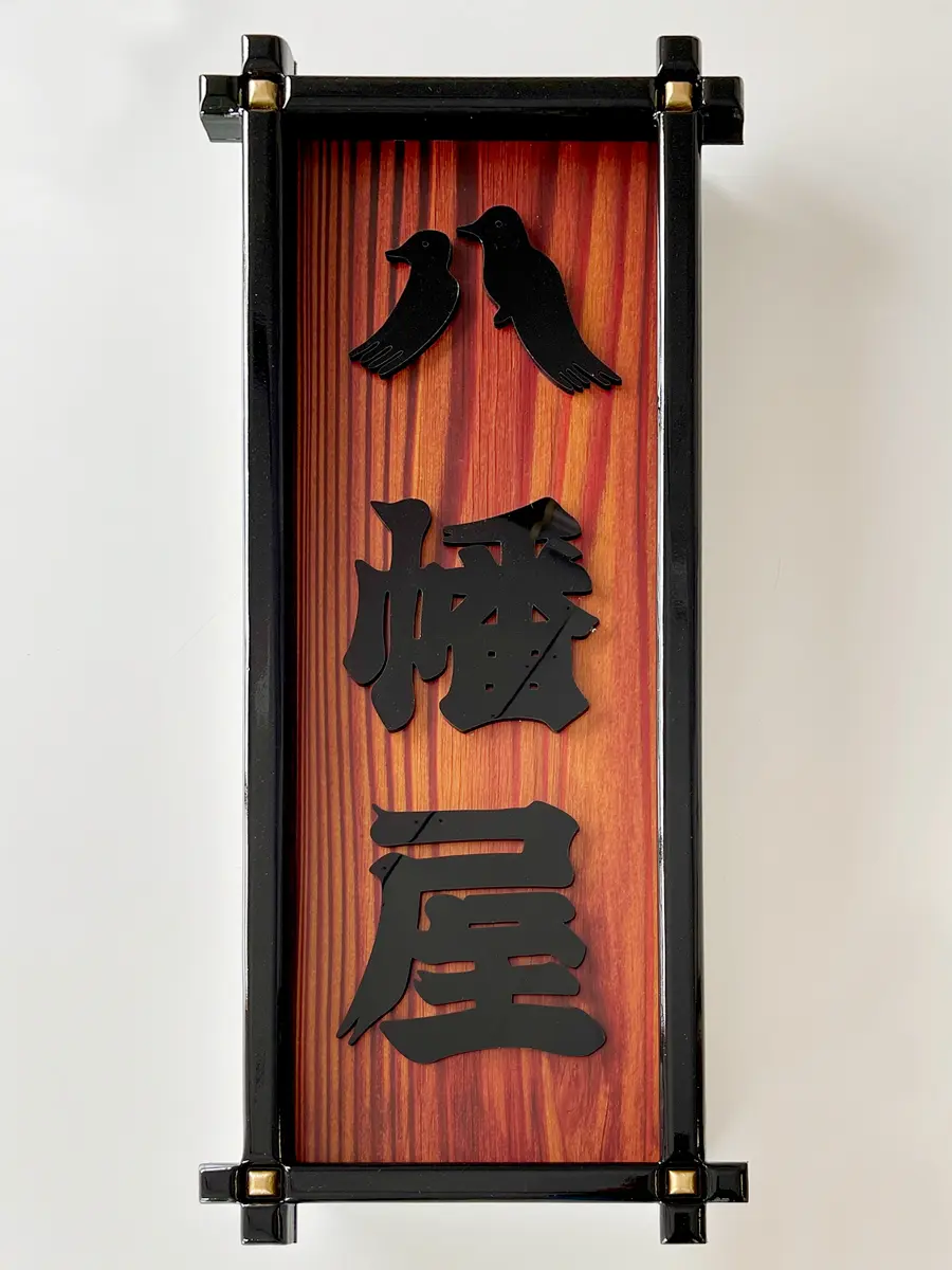 製作・施工事例 - 八幡屋様 2025/7/1 シリーズ名:雅 オプション照明:無し デザイン:井桁 サイズ:SSサイズ サインビクトリーからのコメント:大人気の和風看板、アドフォームソリッド・雅の制作事例。黒い立体感のある木製風フレーム・板面も木目が特徴的、全て木よりも耐久性の高い素材で長く綺麗にお使いいただけます。ロゴ部分はアクリルカットで小型でも浮き出す立体感のある表現。 お客様からのコメント:お客様からのコメントは現在作成中