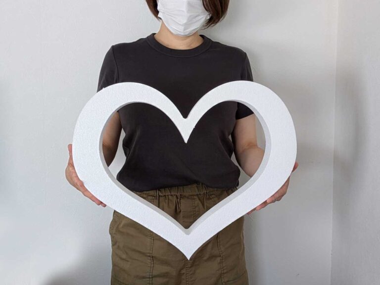 本日ご紹介するのは千葉県大網白里市のアート教室・アトリエBINEN様のハート形発泡スチロールオブジェです。