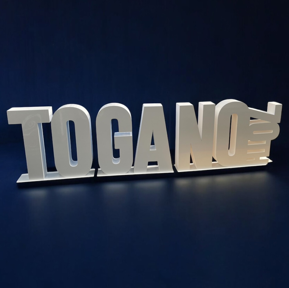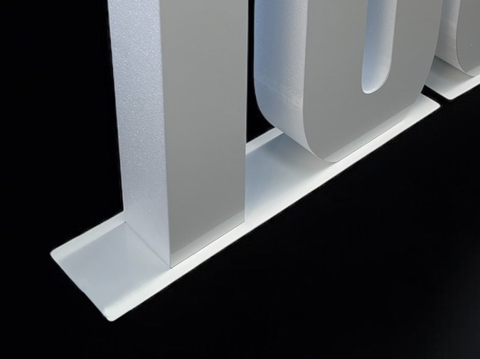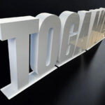 また、自立用土台を装備することで発泡文字を置き型オブジェとして製作することが可能です。今回はおおよそ2文字分ずつを1つの土台として製作しておりますが、ご希望次第で1文字ずつ独立した土台を製作する事も可能です。