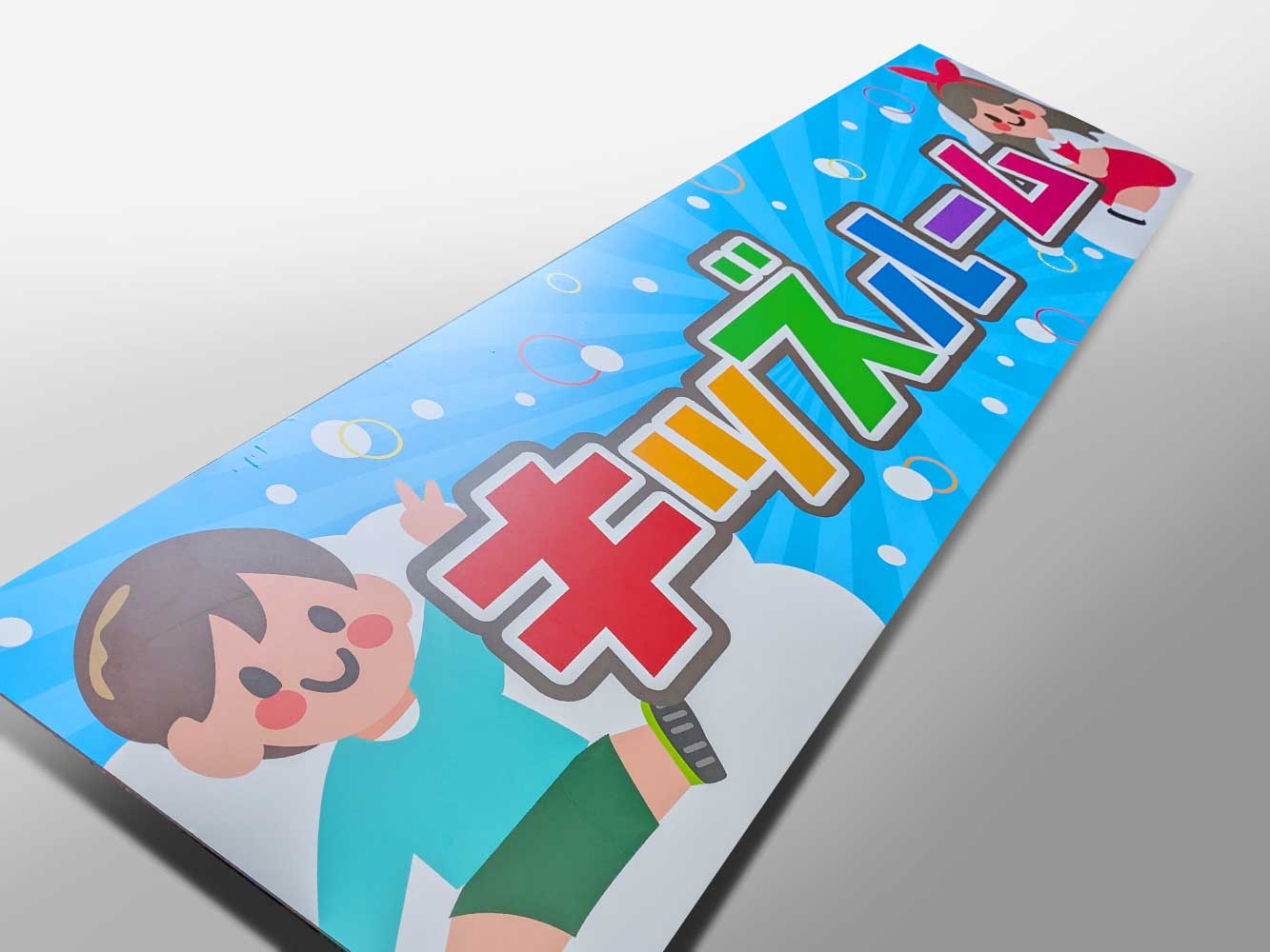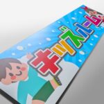 サイズは横長の長方形で、今回は特にオプションのご利用はありませんでしたが、設置場所に合わせて穴あけ加工やハトメ加工などを追加することができますので、お気軽にご相談ください。