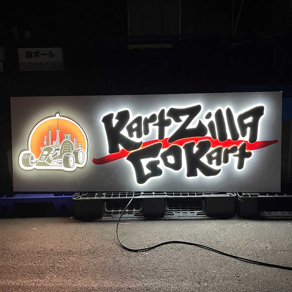 本日ご紹介するのはゴーカート施設様のLED看板・LEDバックライト文字風看板・ダイアモンドバックの製作事例です。