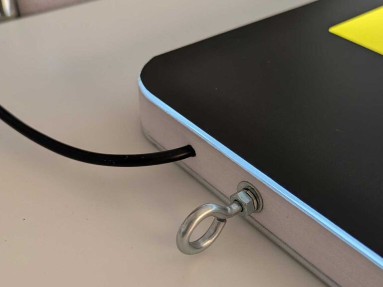 また、お客様のご希望で天吊り設置用に、看板上部に吊り下げフックを取り付けています。