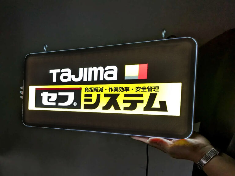 本日ご紹介するのは総合建築工具メーカー様のロゴデザインがかっこいい店舗屋内用軽量内照サイン・フォームライトの制作事例です。
