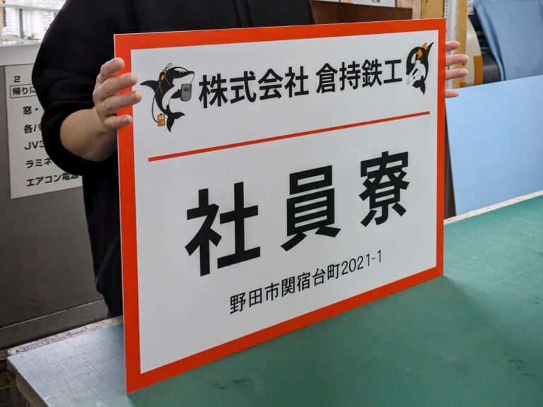 本日ご紹介するのは株式会社倉持鉄工様のアルミ複合板看板(プレート看板)の制作事例です。