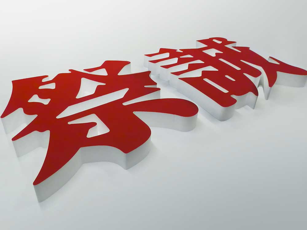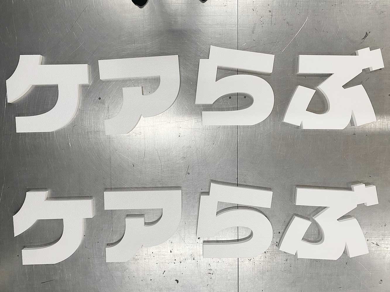 【発泡スチロール切り文字】特注・縁取り風デザインの立体切り文字看板の製作事例をご紹介します。