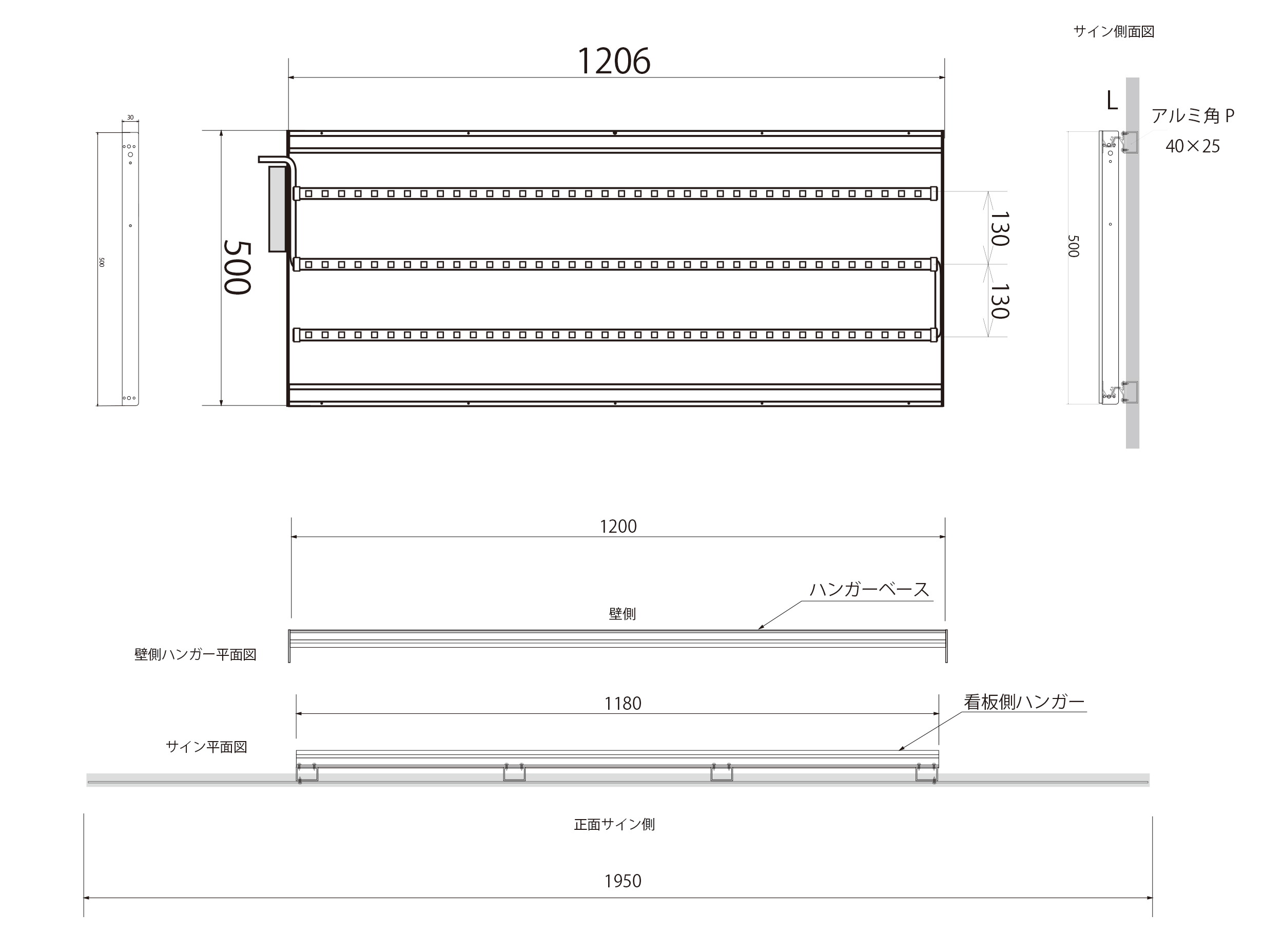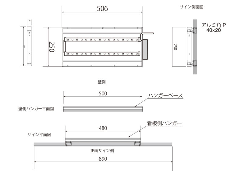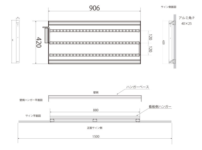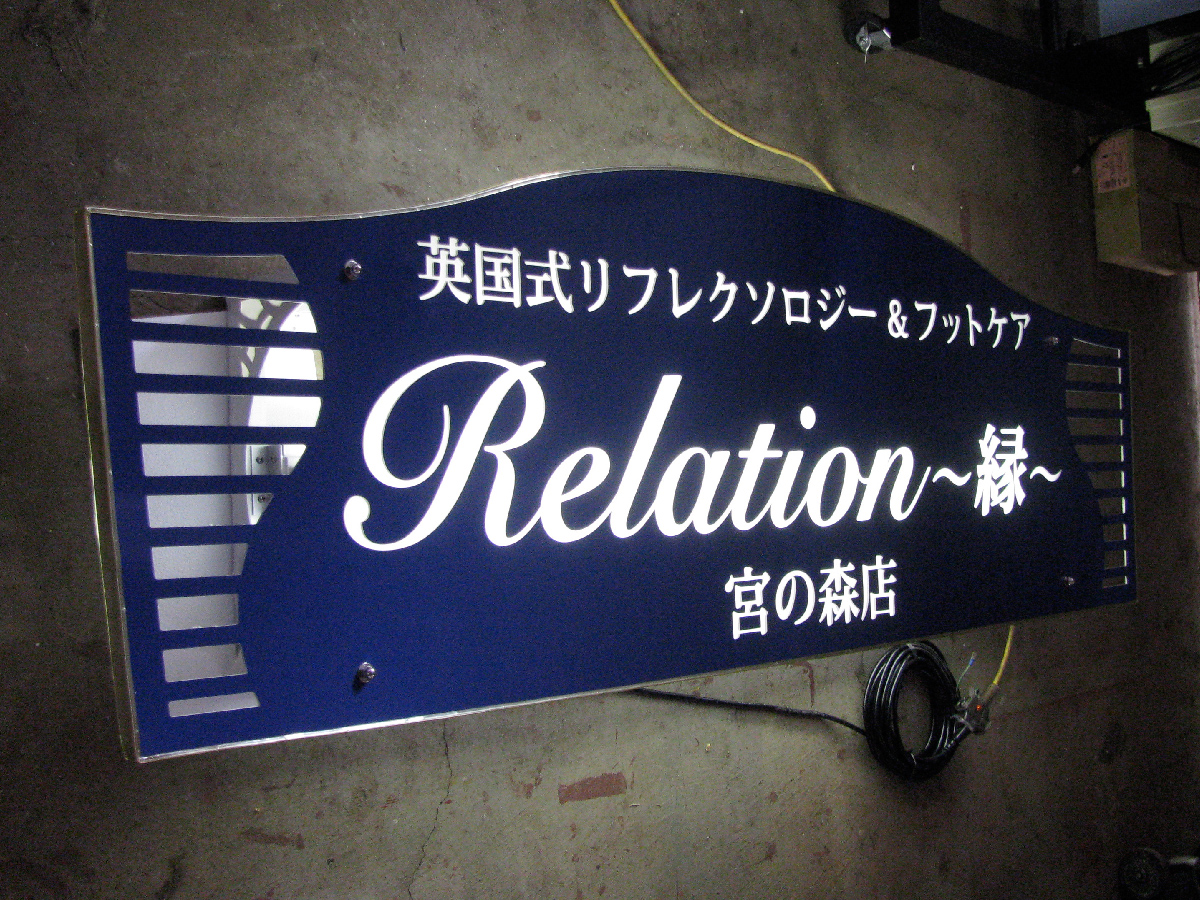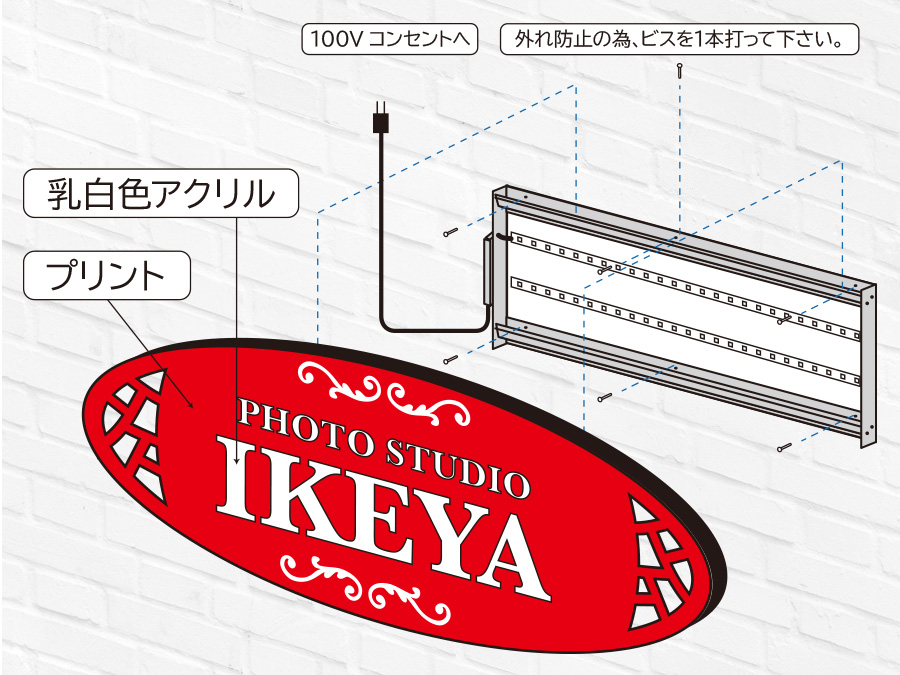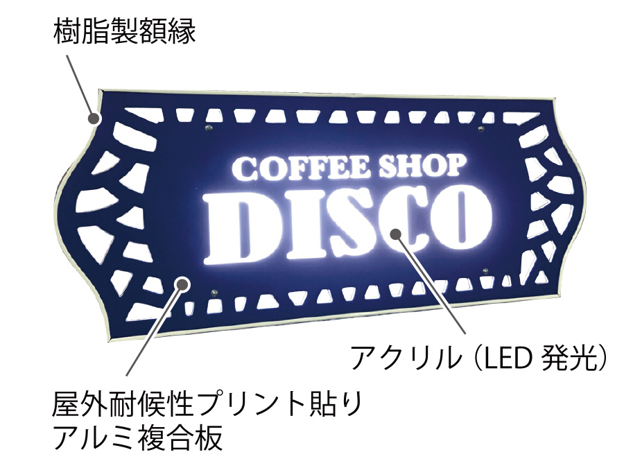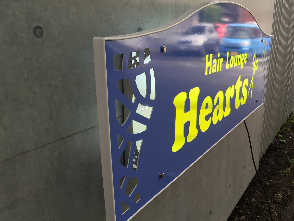 シンプルサイン ルミネス 2025年10月7日 by admin_simple シンプルサインルミネス SSサイズ ¥70,000(税別/送料別)~ 夜間に文字部分がLEDで光る ローコスト&LED内照の屋外用壁面看板 夜間でもLEDの光りでお店をセンス良くアピールできる「シンプルサイン・ルミネス」。 パネル面は軽量で耐候性のある3mm厚アルミ複合板を使用。店舗名をくり抜いたベースに乳白色アクリルを貼り付けて、背面からパワーLEDモジュールを照射することにより、文字部分と看板全体の外周がキレイに輝きながら光ります。設計をシンプルにすることにより、LED内照式看板なのに驚きの低価格を実現しました。 本体スタイルやカラーの組み合わせを自由に何度でも試せる「デザインシミュレーションデザインシミュレーション」もご用意しております。 シンプルサイン ルミネスの特徴 シンプルサイン ルミネスの構造 お客様の声 製作・施工事例 テンプレートデザインについて お見積り・お問い合わせ PRODUCT FEATURES OF SIMPLE SIGN LUMINESシンプルサイン ルミネスの特徴 ローコストでもLEDで光る屋外看板 昼と夜でイメージが変わる高級感を演出 屋外用看板材料「アルミ複合板」を使用することでローコスト&軽量、かつオリジナリティのあるデザインに仕上がる看板製品「シンプルサイン」に、屋外用の高輝度パワーLEDモジュールを導入。文字やロゴ部分を切り抜き、背面から乳白色アクリルを貼り付けることで、夜間は文字部分が内照し、背面からは漏れた光が看板全体にバックライト光彩が広がります。お求めやすい低価格さとLEDによる昼と夜で印象が変わる高級感を演出するローコストLEDデザイン看板です。 側面に25mmの樹脂製 額縁を巻付け。看板に厚みが生まれ重厚感を演出 軽量さの秘訣、看板の材料「アルミ複合板」は厚み3mmと薄型ですが、側面に樹脂製25mm幅の額縁を巻きつけることで、看板の厚みを演出。平看板ではできない、壁から浮き出るような立体感で一味違う高級感や重厚感が出ます。 LED内蔵でも軽量&取り付け簡単 「アルミハンガー式LEDベース」に引っ掛ける用にして取り付けます シンプルサインルミネスも、イージー同様に取り付けは簡単!独自の看板取り付け方式「アルミハンガー式」を応用し、パワーLEDモジュールを内蔵したアルミハンガーベースを開発。先に壁面に「LEDハンガーベース」を設置し、あとから非常に軽量な看板部分をベースのフックにひっかけ、下からビス留めする方式。イージー同様の簡単取り付け方式で、クレーンの引き上げなどは不要、位置決めも固定も最小限の工数・人員で行えます。 プレート看板にはない厚みを演出 樹脂製額縁の巻付け EPSON製 大判プリンタと国産塩ビシート・UVカットラミネート加工で 高いクオリティと高耐候性を実現 看板表面のデザイン出力には、超高画質・広色域と鮮やかな色彩表現のEPSON製 サイン&ディスプレイ向け大判インクジェットプリンタを使用。高精度で発色も良く、複雑なデザインデータも再現出来ます。印刷に用いる塩ビシート、及びラミネート加工用シートは、国産かつ屋外耐候性が高い製品を選定し、非常に高いUVカット率で紫外線によるインクの色あせを抑え長期間デザインの美しさを保ちます。 屋外耐候性塩ビシート 協同制作(国産品) 紫外線カット機能付きラミネート ビッグテクノス(国産品) カラー出力機 エプソン(SureColor S80650使用) STRUCTURE OF SIMPLE SIGN EASYシンプルサイン ルミネスの構造 01シンプルサイン ルミネスの基本的な構造について 看板 盤面の構造について シンプルサインルミネスのベース材料となる「アルミ複合板」に、屋外耐候性・UVカットラミネート加工を行ったインクジェットプリントシートを貼り付けカラーやデザイン柄を定着。外周には樹脂製の額縁を巻き付けて看板に厚みを与えております。また、ルミネスは文字部分を切り抜いて乳白色アクリルを貼り付け、夜間は背面からのLEDを通して光る構造が特徴です。 ハンガーベースとパワーLEDモジュール シンプルサイン ルミネスの看板背面部となるハンガーベースには、屋外用パワーLEDモジュールが内蔵されております。看板の背面から文字部分の乳白色アクリルにLEDが照射されることで、文字部分が内照し背面に漏れた光が看板全体に対するバックライトとして広がります。電源は100Vコンセントまたはケーブル状態でのご用意、ケーブルの出し位置も製作前にご相談が可能です。 アルミハンガーと壁面取付けイメージ シンプルサイン ルミネスも、イージー同様にアルミハンガーによる取り付け方式を採用しております。ルミネスのアルミハンガーベースは前項のパワーLEDモジュールを内蔵しておりますが基本的な取り付け方法はイージーと変わりません。先に壁面にハンガーベースをビス止めし、その後に看板部分の背面のハンガーを引っ掛けるようにしてハンガーベースに取り付け、下側からビス止めを行って設置は完了します。 02スタイル別 看板面のイメージ図と寸法 ルミネス オーバルス